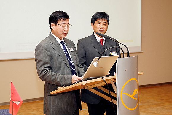 本次会议还授予了我校管理与经济学院学生李颖和黄觅同学2008年度“汉莎航空技术公司优秀学生奖”。该奖是汉莎航空技术公司与我校合作建立国际经济与贸易专业实习基地时设立的。杨蜀康书记向我校获奖学生表示祝贺,勉励他们努力学习,为学校争光,为促进学校与汉莎航空技术公司的合作做出贡献,并与获奖学生合影留念。