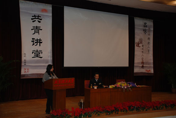 讲座开始前,播放了一段简短DV,其中详细记录了共青讲堂走过的两年历程,一个个鲜活的嘉宾形象跃然于银幕之上,让我们重温了那些精彩、感动的瞬间。随后进行的是一个简短的庆祝仪式,