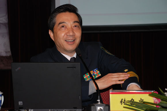 张召忠将军从俄美对抗与中俄合作,美国衰落与中国崛起,周边挑战与国防安全三方面讲述了当前国际形势。他从北约的东扩谈到俄罗斯的反击,以及俄,加,丹等国对于北极地区丰富资源的争夺。针对我校国防相关专业较多的实际情况,张将军还专门从武器装备的角度分析了美、俄、中的军事力量对比,指出了中国国防实力的薄弱环节与目前面临的威胁与挑战。在解析中国崛起所面临的各种问题时,张将军指出,各国已从过去对土地资源,海洋资源的争夺,转变为“数字化圈地运动”。所以中国也应从过去的“重道轻技”的思路中走出来,加强军队的机械化、信息化建设。