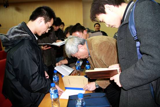 戚院士精彩的报告吸引了研究生们的浓厚兴趣,整个图书馆报告厅座无虚席,甚至有不少同学在站立中听完了整个报告。戚院士对新中国航天事业的发展做了完整的回顾,他幽默的语言也赢得了全场师生的热烈掌声,并将此次报告会推向高潮。在最后他还鼓励同学们要继续努力,学习发扬老一辈航天人为祖国的航天事业无私奉献的精神,争取成为中国航空航天领域的优秀的接班人和生力军。报告会结束后有不少戚院士的Fans又将戚院士紧紧围住期望得到他的签名和合照,戚院士耐心的满足了每个人的要求,让我们再一次领略到了他的大师风范。