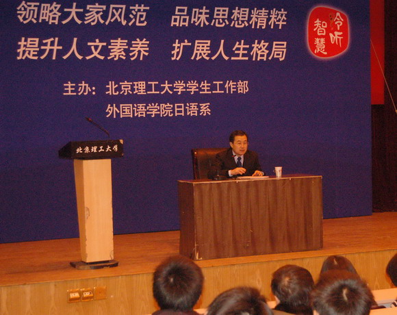 2008年12月21日“聆听智慧”名家论坛第32期在七号楼报告厅举行,中国社会科学院日本研究所副所长金熙德教授为我校师生作了题为“当代日本政局与中日关系”的专题讲座。外国语学院副院长兼日语系主任谭利群、学生工作部副部长娄秀红、日语系副主任李建华,以及日语系外教野村良男出席了本次讲座。300余名师生到现场聆听了金教授的演讲。