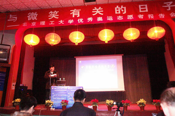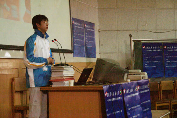 奥运会志愿者张鹏在作报告