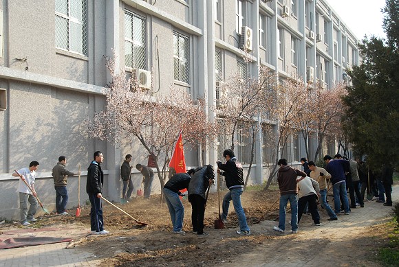 上个周末,我校部分师生员工放弃休息,积极投入到“植树造林 绿化校园”活动中来。