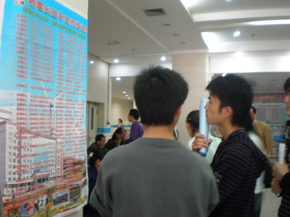 4月9日下午三点,我校在体育馆举办了针对09届毕业生的新疆生产建设兵团专场招聘会。新疆生产建设兵团主要领导干部一行36人访问我校,此次为兵团招聘团队首次到访,兵团下属农一师等16个单位共带来需求职位4433个,分为工业、农业、建筑、医药、文科五大类,与我校毕业生专业相关职位1000余个。我校一直以来积极响应中央号召,鼓励毕业生去中西部就业,去艰苦地区就业,为建设祖国做出应有的贡献。本次在各学院、后勤等部门的大力支持和配合下,召开新疆生产建设兵团专场招聘会,为有志愿去西部就业的同学们搭建了良好的平台。