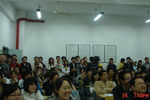 在讲座中,钱老师和大家分享了他的大学生活和创业经历。钱老师2000年考入长安大学,学费问题成了压在他肩头的沉重包袱,为了不给家庭增加负担,他在努力学习的同时,开始了批发小商品和四处打工的生涯。为了推销产品,一家家上门拜访客户;为了联系业务,顶着烈日跑遍西安大街小巷。四年时间,他从一个路盲到西安通;从第一桶金到组建团队,扩大经营;从与动感地带合作,到组建自己的公司。钱俊冬凭自己的艰苦奋斗,不仅迈出了自己事业的第一步,还为2000多大学生提供了兼职就业的机会。