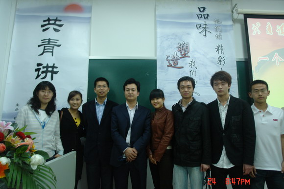 4月24日晚19:30,共青讲堂第五十二期讲座在中教322教室准时开讲。为了更好的指导同学们正确对待就业压力,鼓励同学们积极自主创业,校团委邀请西安三人行广告传媒有限公司、西安三人行信息通讯有限公司、合肥三人行教育科技有限公司、北京橙色风暴有限公司董事长兼总经理钱俊冬来校做了题为《一个特困生的创业之路》的专题演讲。钱老师用自己的亲身经历,为同学们讲述了他从一名特困生到多个公司董事长的创业之路。校团委书记徐强亲自主持了整场讲座。