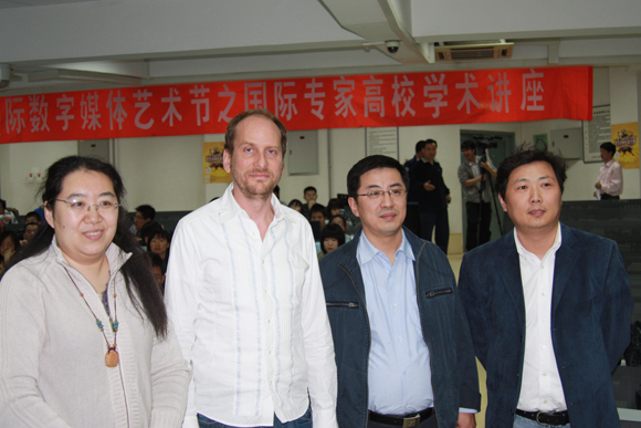 这位法国专家开场时用两句不流利的中文向大家问好,瞬间拉近和同学们的距离,讲座在友好的气氛中拉开了序幕。通过逼真的三维视屏演示和生动活泼的语言,Block先生为大家介绍了欧洲顶尖电影工作室的制作流程、方法以及评判标准。绚丽的效果,前所未有的视听冲击深深地吸引了同学们。