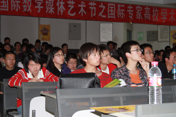 在热烈的掌声中,本次讲座圆满地落下了帷幕。看着同学们那一张张充满活力的面孔,一双双热切的眼睛,相信今天的讲座在每一位同学的心中都播下了兴趣的种子,在不久的将来,会成长成一颗参天大树,为中国动画和CG产业撑起一片广阔的天空。