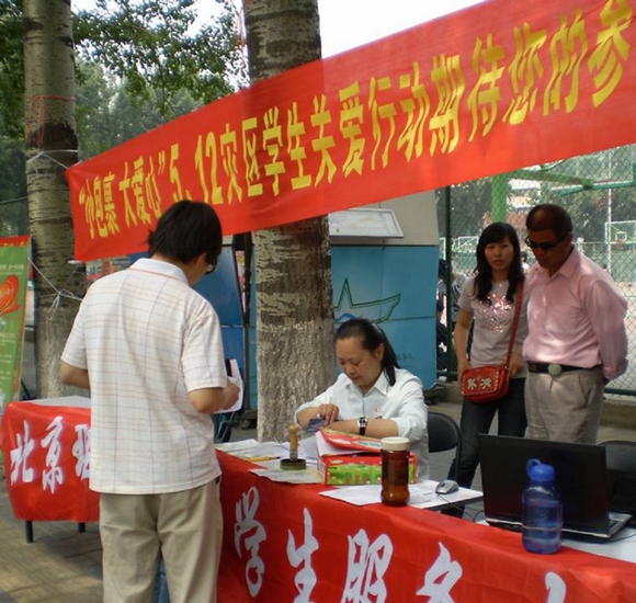 5月11日中午,我校自强社、学生服务大队学生在中关村校区新食堂门口、良乡校区食堂门口同时开展了512“爱心包裹”关爱活动项目宣传,动员我校师生向512地震受灾中小学生捐购“爱心包裹”,为他们送去“六一”儿童节的关爱。