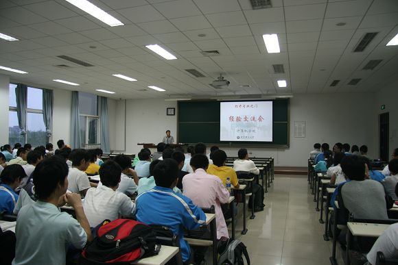 2009年5月8日下午,管理与经济学院“打开专业之门”系列活动在良乡校区理科教学楼继续深入开展。本次讲座邀请了三位高年级优秀本科生和高素质研究生作为主讲者,他们围绕“考研”、“就业”、“学习”三个方面针对专业展开精彩的演讲。通过报告和现场互动沟通,本次活动在为低年级本科学生树立榜样的同时,也为他们在面对专业学习所遇到的问题进行了解答并提出了具体的建议,激发了学习兴趣并营造了浓厚的专业学习气氛。