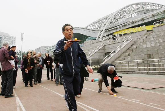 2009年5月15日上午8:00,近两千名离退休教职工齐聚学校东操场,离退休工作处在这里举行了2009年离退休教职工运动会。我校党委副书记、学校工会主席侯光明、副校长李和章、体育部王皋华主任和韩棋书记、离退休工作小组督导员张民生等到场观看了运动会。
