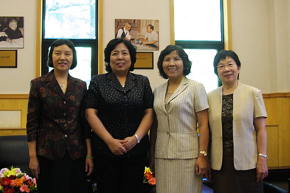 妇联主席赵津芳、史静寰会长、陈晋南副会长兼秘书长(左一)和邸瑞华监事长开会前合影