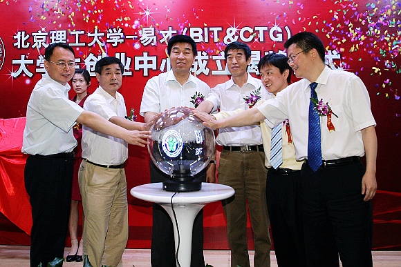 全国首个“校企合作、以就业为导向”创业基地——“米兰milan官方网站-易才(BIT&CTG)大学生创业中心”在我校正式成立。 在热烈的掌声中,郭大成书记、于法鸣司长、尹卫军司长、王辉处长、张继栋主任、李浩总裁共同点亮了呈现创业中心标志的水晶球;由郭大成书记和李浩总裁为米兰milan官方网站-易才大学生创业中心进行了揭牌。