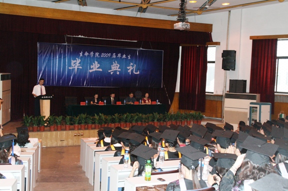 2009年6月23日,生命学院在7号楼报告厅隆重举行2009届毕业生毕业典礼,全院应届毕业本科生、硕士生和博士生参加了本次典礼,生命学院邓玉林院长、李汉军书记、唐晓英副院长和李勤副院长出席典礼,典礼由周连景副书记、副院长主持。