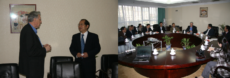 胡海岩校长同Hopcroft教授进行了会谈。国家外国专家局科教文卫专家司王新民副司长,王嵩处长,我校国际交流处王庆林处长,计算机学院黄河燕院长,郭彦懿书记、牛振东副院长及部分教授代表参加了会谈。