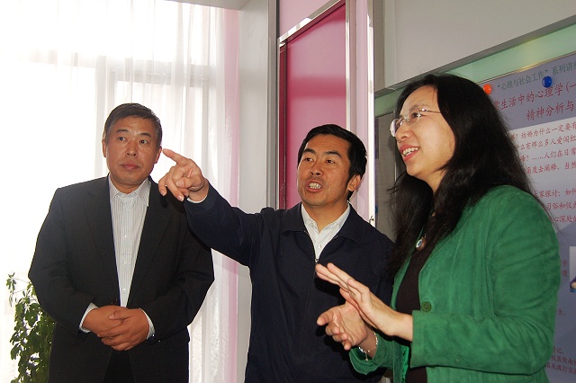 挂牌仪式上,王民忠书记(左)授牌并致词,他结合当今社会人际交往和生活压力的现实强调了心理咨询的意义和重要性,表达了对我校心理素质教育示范基地未来工作的良好祝愿和期望。李校长对我校心理咨询服务和教育工作给予了高度的关心和支持,肯定了我校心理咨询理论和实践的发展,并表达了对学生心理健康工作的关注。