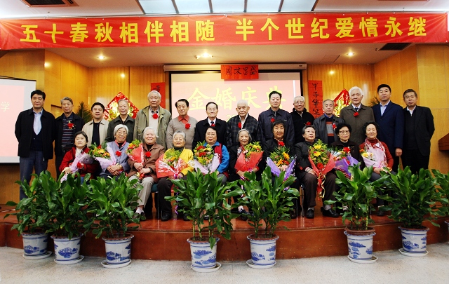金秋十月,秋高气爽。10月28日上午,在理工国际教育交流中心多功能厅,我校离退休工作处和离退休教职工党委为我校离退休金婚夫妇隆重举行了金婚庆典。我校党委书记郭大成,党委副书记、副校长杨宾,副校长赵显利、李和章以及各对金婚夫妇原单位领导出席了金婚庆典仪式。
