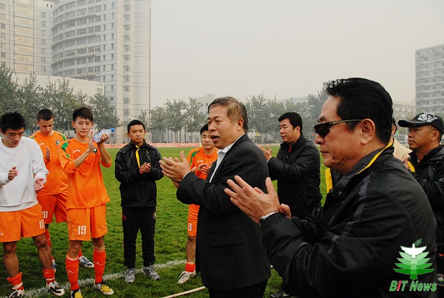 开赛前,现任国家队主帅高洪波应徐根宝的邀请来到现场观战。