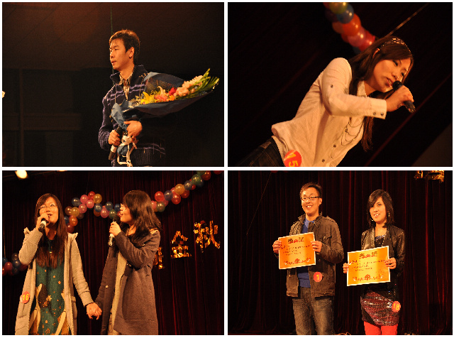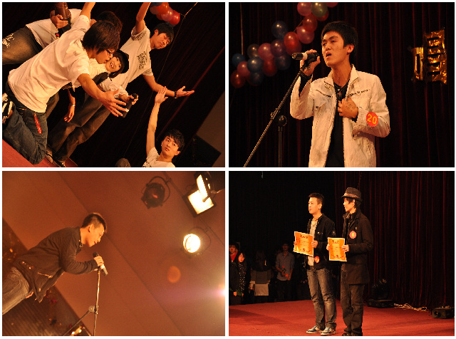 一段精彩的开场秀过后,整场比赛在法学院选手高玮同学的《果汁分你一半》中正式拉开帷幕。接着,各院选手陆续登台,激情澎湃,深情演绎:《我走以后》、《野百合也有春天》、《恋爱ing》、《我要我们在一起》、《Tonight I feel close to you》、《真实》等一首首经典曲目逐一上演。前两个小节结束后,比赛已达到白热化的阶段,现场观众的气氛也已达到高潮,特别是中间的现场互动环节,更是让在座的亲友团将自己的热情发挥到了极致。