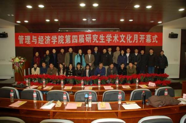 管理与经济学院第四届研究生学术文化月开幕式于11月19日召开,该活动以“创新、交流、共进”为指导思想,旨在为全院的研究生学习和交流提供一个高起点、深层次、广视野、多领域的学术交流平台,提高研究生的科研创新意识,加强导师与学生之间的交流,促进优秀研究成果的交流,实现研究生教育优质资源的共享,创造一种优良的环境和宽松的学术氛围及空间。校团委、研究生工作部、管理与经济学院领导及各个系系主任和学科带头人参加了开幕式。会议由09级博士研究生聂晓愚主持。
