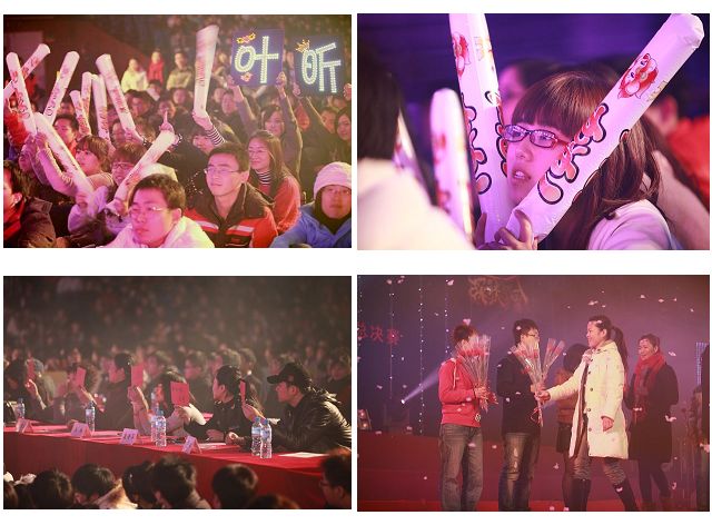 台上选手的精彩表现,感染了台下每一位观众。他们完全将自己的情绪同选手们连接在一起。手中的荧光棒随着音符轻轻摆动,写满祝福的标语牌和横幅在会场中摇动,他们毫不吝惜自己的掌声和欢呼,为选手们加油鼓劲,展示了米兰人特有的热情。本次歌会的评审也充分体现了“评学生自己真正喜欢的歌手”的原则,由场上评委及大众评审上台投票选出自己心中的冠亚季军。根据选手所得鲜花,得出韩欣欣夺冠,张欣和叶昕并列亚军的最终结果。同是来自我校独立音乐协会的三“欣(昕)”,在深秋歌会的舞台上熠熠闪光。