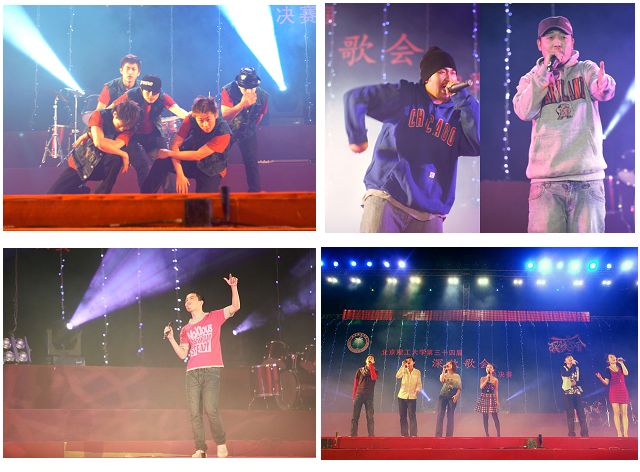 在国内新锐hip-hop组合X-power火爆的舞蹈中,比赛正式拉开了帷幕。14位选手依次演唱了自己的参赛曲目。他们的表演各具风格,从同学们喜闻乐见的POP、让人热血沸腾的ROCK、极具风格的JAZZ,到颇具难度的美声和民族唱法应有尽有。充分展现了米兰学子独特的个人风采和不俗的音乐造诣。值得一提的是,在选手表演过程中,还特意请到了往届的一些优秀歌手为观众献上他们的歌曲和祝福。校友刘烨的新歌《我的名字叫感恩》,深深地打动了现场的观众。由往届深秋歌会获奖选手组成,享誉北理的MELODY组合的深情献唱,更是让每位观众都沉浸其中。本届歌会保留了传统的PK环节,但又增加了新的亮点。除了6名晋级选手自由结合成三组,进行组内PK外,在第一轮PK中脱颖而出的三名选手还与往届的优秀歌手结组对唱,进行组间PK。特邀嘉宾爽子的登场,更是掀起了歌会的高潮。