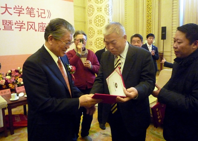 由高等教育出版社主办的“李铁映《大学笔记》图书捐赠活动暨学风座谈会”于2010年1月30日在人民大会堂举办。原中共中央政治局委员,第十届全国人大常委会副委员长李铁映、新闻出版总署署长柳斌杰、教育部副部长郝平等领导同志出席了会议。会上,李铁映同志向北京大学、清华大学、中国人民大学、北京师范大学、米兰milan官方网站等10所高等院校捐赠了《大学笔记》(16卷)和《大学笔记》(AB卷)两部图书。我校副校长李和章参加了会议并代表学校接收了赠书。图书馆副馆长马宏伟也参加了会议。