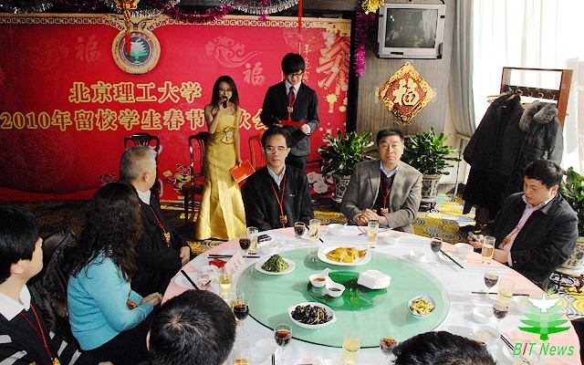 党委书记郭大成首先祝福我校所有留京过春节的同学们节日愉快、虎年大吉!他在新年贺词中回顾了我校2009年在教学和科研工作中取得的成绩,对同学们的进步表示祝贺,同时希望同学们和学校一起展望2010年,共同努力建设学校更美好的明天,他祝愿同学们这个离家在外的春节同样能够感受到家庭的温暖,过一个快乐的新年。