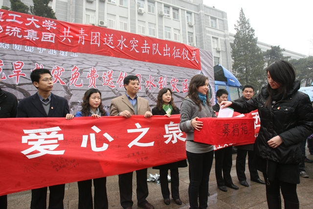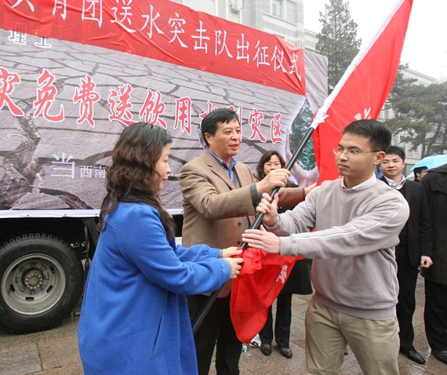 侯书记介绍了我校此次“捐水节水 抗旱救灾”活动的基本情况,对米兰广大师生的热情与奉献精神给予了充分肯定,同时对广西玉柴物流集团为送水工作无偿提供物流支持表示感谢。最后侯书记代表党委行政领导祝愿送水志愿者突击队能够顺利到达云南灾区,把米兰广大师生的祝福与关怀送到灾区人民手中。