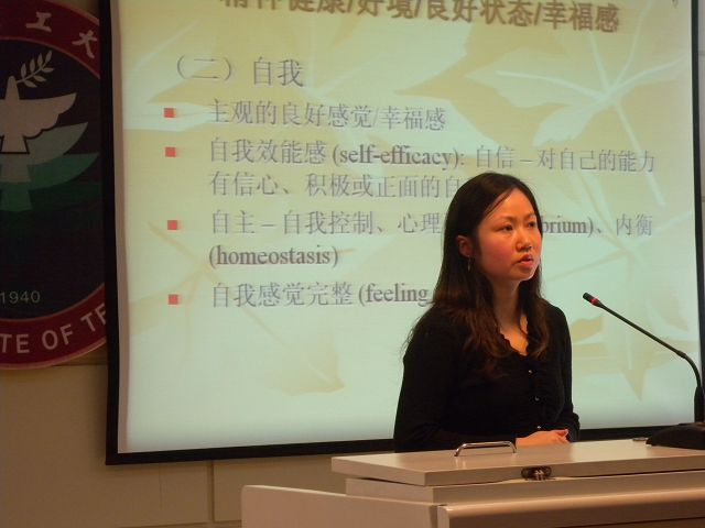 特尔格乐同学,我校机电学院机械电子工程专业07级本科生。她来自内蒙,蒙古族。从小学、中学都是用蒙语接受教育的她,在进入大学后,勤奋学习,成绩优秀,大学英语四、六级更是一次性通过。她着眼于从预科到本科的过渡,向同学介绍了如何通过自身“内部环境”的调节来应对“外部环境”的变化。
