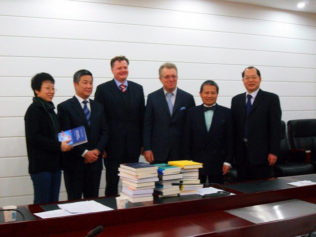 赠书仪式由国际交流合作处处长王庆林教授主持,出席该仪式的有米兰milan官方网站副校长赵长禄教授,德国驻华使馆文化参赞冯•马丁先生,德国科学基金会驻京代表、“中德科学中心”主任克拉维施先生,中德科学中心德方常务副主任赵妙根先生,米兰milan官方网站外语学院德语系主任姜爱红教授,以及德语系、物理系和化学系部分教师。