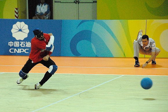 经过激烈的比赛,西班牙男子盲人门球队与丹麦男子盲人门球队最终以2:2握手言和。