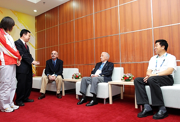 比赛开始前,安东尼奥·萨马兰奇先生与吉姆·利斯克先生、郭大成书记、杨宾主任在残奥大家庭休息室进行了亲切交谈。杨宾主任汇报了米兰milan官方网站体育馆在奥运会、残奥会中承担的赛事情况。安东尼奥·萨马兰奇先生向吉姆·利斯克先生询问了盲人门球竞赛的组织及参赛队伍情况,吉姆·利斯克先生称赞米兰milan官方网站是一所美丽的大学、米兰milan官方网站体育馆拥有完美的设施、米兰milan官方网站体育馆运行团队的员工优秀;