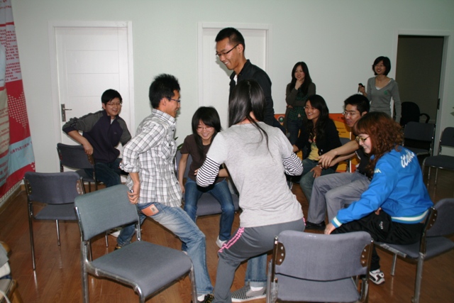 热身结束后,参与本次活动的研究生们分成两个小组,参与到“我想认识你” 系列活动与“占空椅”游戏中。在“我想认识你”系列活动中,同学们开展了自我介绍、个人情况随机问答以及家人照片展示等活动,在开诚布公的氛围中,同学们彼此分享生活体验与人生理想,大家相互间或由陌生到熟悉,或由熟悉到更深入的了解。在“占空椅”游戏中,大家积极发挥团队讨论与协作的能力,纷纷为团队出谋划策、积极参与其中并享受游戏的乐趣,并在游戏结束后互评游戏过程、分享活动收获。整个活动过程中,辅导老师的引导与点拨更让同学们获益匪浅。