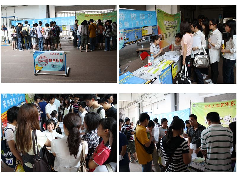 计算机学院2009级研究生卢耀华在投完简历后,发现会场外还有许多人围在一个叫做“简历诊断台”的展位前,他急忙前去排队,刚刚被修改过简历的一个同学告诉他:“我要回去改改,然后回来重新投一次。”