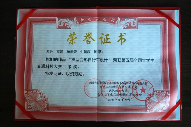 我校珠海学院机械与车辆工程学院在5月23日第五届全国大学生交通科技大赛决赛中表现出色,荣获三等奖,这是唯一获奖的独立院校。