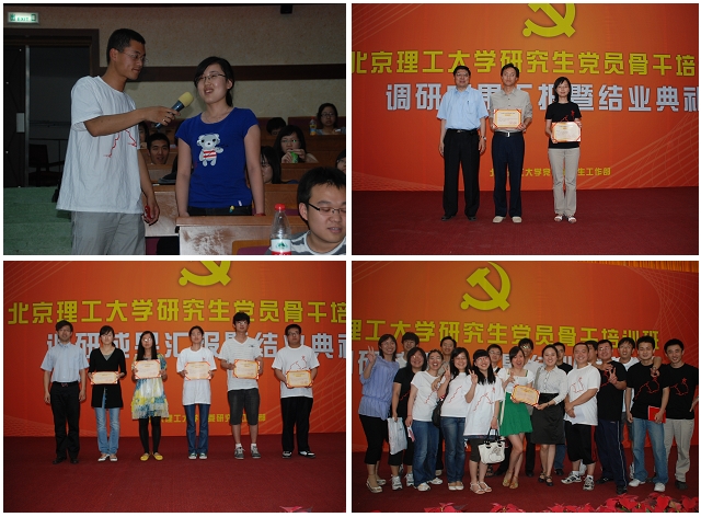 调研汇报后举行了党员骨干培训班结业典礼。郝洪涛部长宣读了结业学员名单和优秀班主任、优秀学员、优秀心得论文和优秀调研成果的表彰决定,出席本次活动的嘉宾为获奖的集体和个人颁发了荣誉证书。
