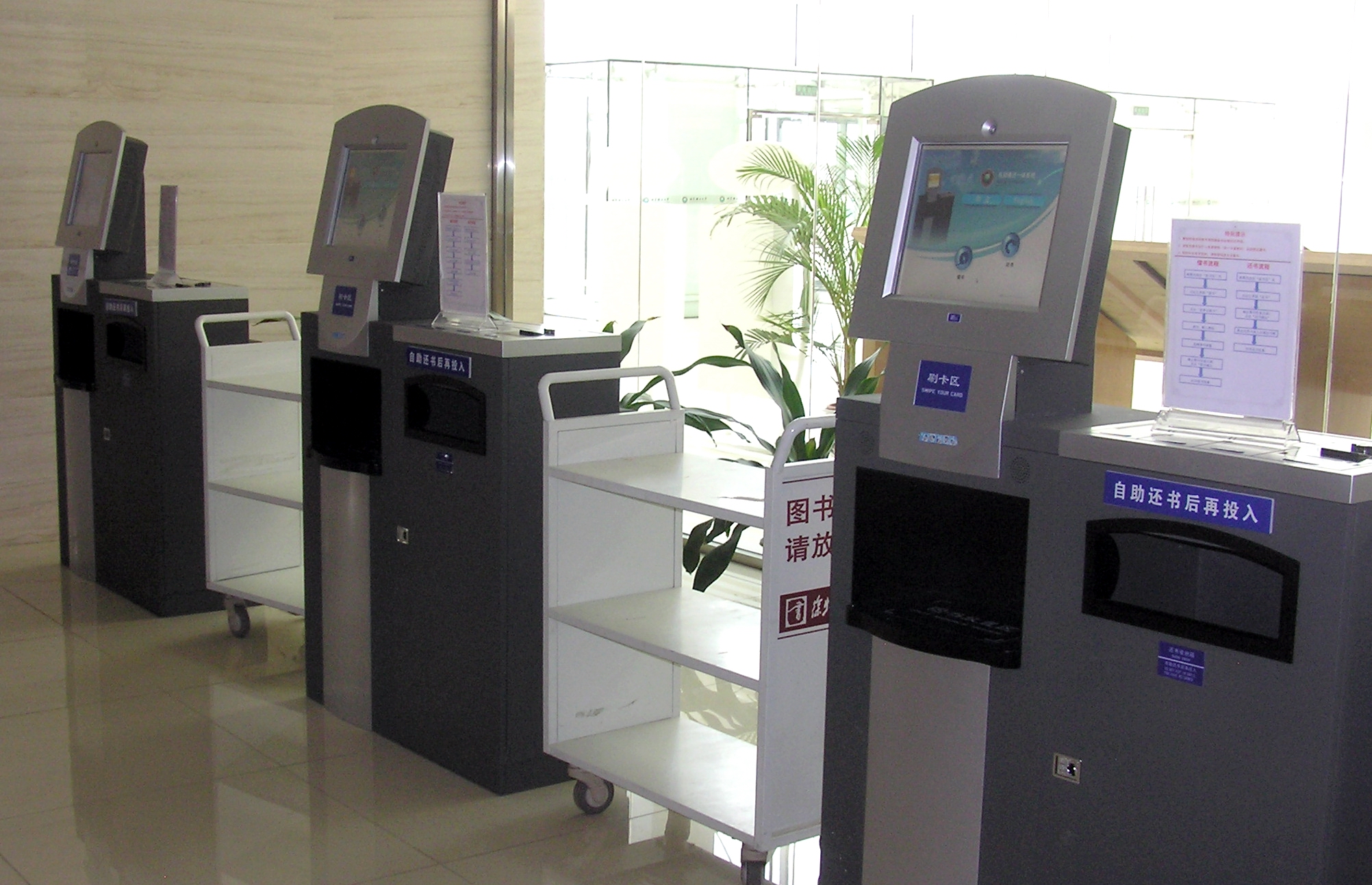日前,我校图书馆建成图书自助借还系统。依托该系统,读者不必通过图书馆员即可自己进行借书、还书操作,不必进入图书馆即可24小时还书。