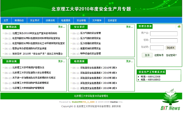 实验室与设备管理处专门开辟了米兰milan官方网站2010年度安全生产月专题网站,并在校园网首页显著位置增设了链接,实时反映相关工作的最新进展情况。