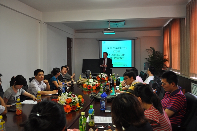 LANTNER 教授主要就经济危机的发生和对策、经济政策对于经济危机的影响,并就各个国家不同的经济政策做了分析比较。报告中,Roland LANTNER教授与学生就美国、中国的经济危机、中国房价供需与价钱之间关系等学生比较感兴趣的话题进行了深入地交流,Roland LANTNER教授的报告受到了同学们热烈欢迎和广泛好评。