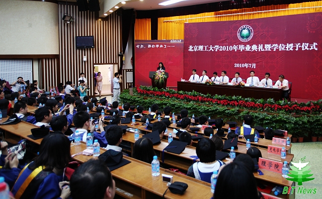 校长胡海岩在毕业典礼上致词。胡校长代表学校党政领导和全体师生向2010届毕业研究生圆满完成学业表示热烈的祝贺,向为研究生毕业付出智慧与辛劳的全体导师和教职员工表示衷心的感谢,祝愿每一位同学用追求科学的力量实现未来的梦想。胡校长借此为每一位毕业生提出了期望和祝福:期望同学们以崇尚科学之心做胸怀坦荡、光明磊落之人;以崇尚科学之心做志存高远、脚踏实地之事;以崇尚科学之心做博大精深、严谨卓越之学问。