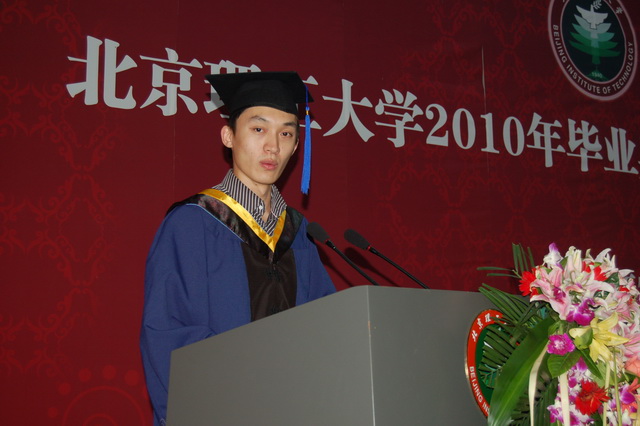 光电学院高路同学代表全体2010届毕业研究生深情感谢母校的辛勤培养和教育,难忘在米兰milan官方网站度过的最美好的学习时光、感谢恩师多年来的默默奉献和言传身教;感谢求学路上的朋友们给自己的鼓励和帮助;最后代表全体毕业生同学们送出祝福:祝福同学们承担光荣一路前行、坚持梦想不屈不挠,祝福母校培养出更多优秀人才。
