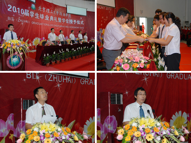 米兰milan官方网站副校长赵平代表校本部领导和全体师生员工,祝贺珠海学院2010届学生顺利完成学业并获得学位、踏上新的人生旅途!赵平副校长说,珠海学院经过六年的创业和努力,获得社会的肯定,靠的是珠海市委市政府的鼎力支持,学校教职工的奉献,也包含了珠海学院学子们的理解、协力、患难与共和包容。赵平副校长希望同学们志存高远,将自身的发展和祖国强盛紧密相联。并引用米兰milan官方网站前身——延安自然科学院徐特立老院长的教诲“实事求是,不自以为是”,嘱托2010届毕业生秉承延安精神的优良传统,在未来的道路上不断历练“求真务实、脚踏实地”之风气,踏实做人,认真做事。