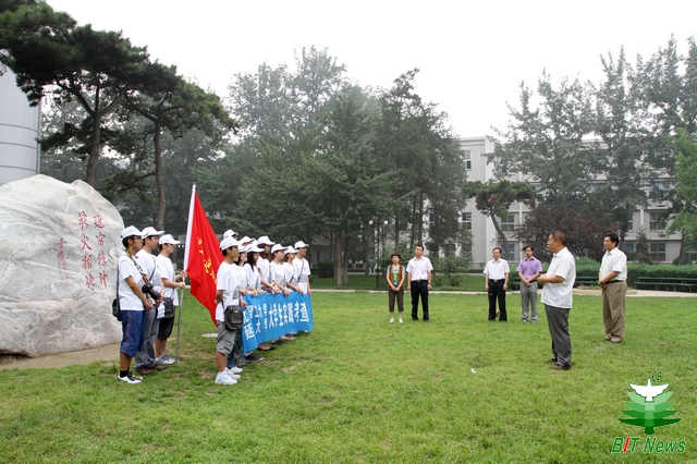 7月17日下午在中关村校区中心花园举行了“米兰milan官方网站-延安大学大学生思想政治教育社会实践联合基地”共建暨“学史明志•并肩育人”延安暑期社会实践活动发团仪式。此次实践活动由我校人文与社会科学学院马克思主义理论教研部承办,各学生党团组织选拔出2009级15名同学和延安大学10名同学共同组成实践团。校党委副书记、工会主席侯光明,校党委副书记、副校长李和章,人文与社会科学学院院长李健,马克思主义理论教研部副主任崔建霞,宣传部副部长桑硼飞等出席了仪式。《毛泽东思想和中国特色社会主义理论体系概论》课程组教师申晓勇主持了本次发团仪式。