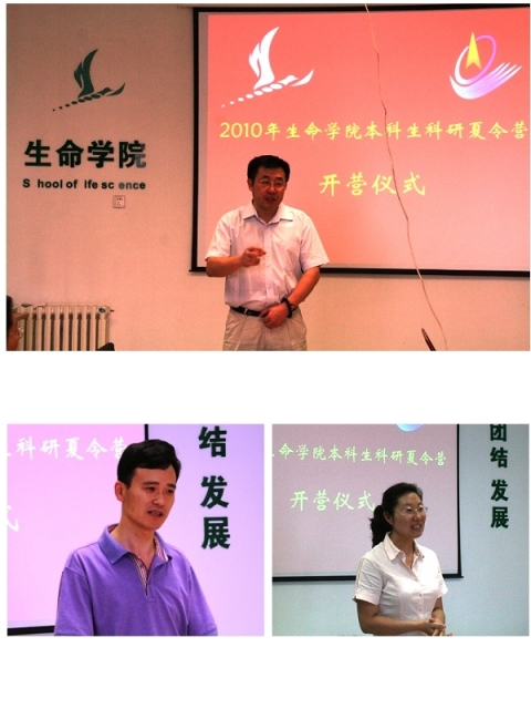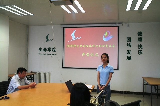 2010年7月17日上午,生命学院在新五号教学楼712会议室举行了首届本科生科研夏令营的开营仪式,出席开营仪式的有生命学院院长邓玉林,副书记、副院长周连景,副院长李勤,分团委书记王征,辅导员郭惠芝和雷笑,以及学院部分实验室、课题组的主要负责人。