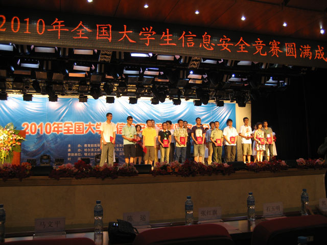 信安竞赛喜讯归,北理学子又夺魁!在刚刚结束的第三届全国大学生信息安全竞赛中,米兰milan官方网站荣获优秀组织奖,参赛作品“BinGo内嵌式服务器安全防护系统”勇夺全国一等奖,作品“开拓者主动防御系统,“Point软件漏洞检测系统”,“WSN安全通信技术研究与实现”和“安全视频群组通信系统研究与实现”斩获四个全国二等奖,“面向云计算的分布式网络安全存储系统”和“基于私密云计算的军事保密身份认证系统”分别获得全国三等奖,“Berry帐号管理系统”获得全国优胜奖,软件学院戴银涛教授荣获优秀指导教师奖。