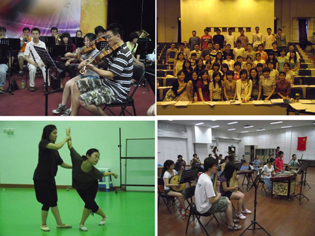 本次校庆晚会的集训队伍,集合了我校各年级艺术团成员的精英,特别是今年新招的2010级艺术特长生提前入学,为校庆的排练放弃了暑期休息,加入到集训的队伍中来。