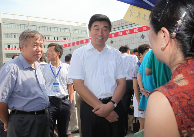 校党委书记郭大成等校领导到迎新现场指导工作。