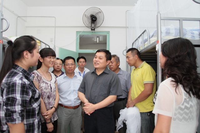 胡海岩校长一行到学生宿舍看望入住新生。