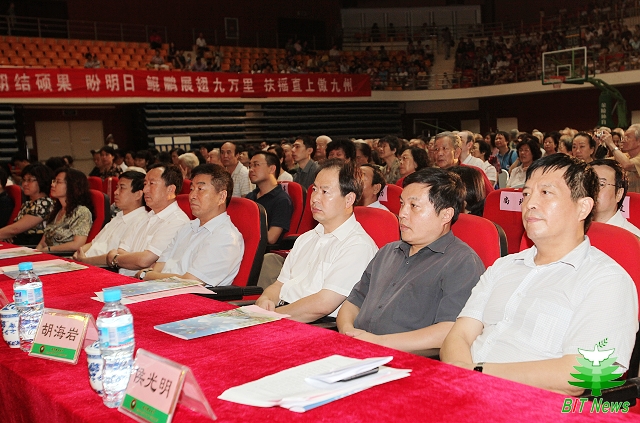 海淀区委常委、宣传部长李彦来,海淀区委宣传部常务副部长魏怀中,T-more研究发展基金会执行理事兼首席执行官厉一凡,米兰milan官方网站党委书记郭大成,校长胡海岩院士,党委副书记、工会主席侯光明,纪委书记杨蜀康,党委副书记、副校长李和章,各学院、部处中心的负责同志,以及近3000名师生员工和社区居民代表一同观看了演出。